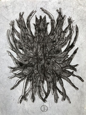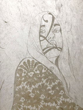 I make the paper for the artworks from natural fibres and set the detailed motif by hand during an elaborate process into the paper. The motif finally exists in the paper: the lines are yarn and the filled areas are yarn strung together or inlays of handmade paper scraps. Typical for CartaStaminea paper artworks are their more or less transparent parts. I developed this special technique between 2007 and 2020. All CartaStaminea paper artworks are one-of-a-kind.